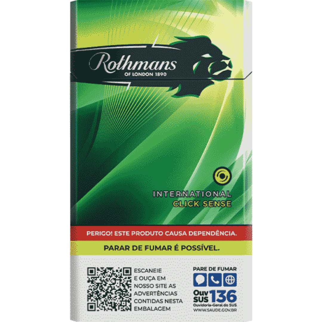 - Embalagem: A embalagem do Rothmans International Click Sense é sofisticada e contemporânea, com cores predominantes que variam, mas geralmente incluem tons de azul ou verde que destacam a frescura e a inovação do produto. O design é elegante e atraente, refletindo a qualidade premium da marca.